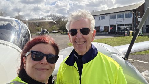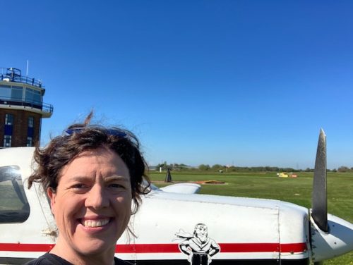 Jo Sharpe on a gorgeous day at Barton Aerodrome, no need to use her new IMC rating on this day…