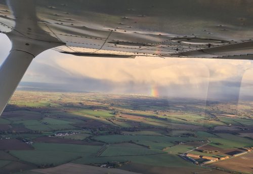Deb Dunlop completed a navigation lesson with a student around some wonderful rain clouds and a rainbow!