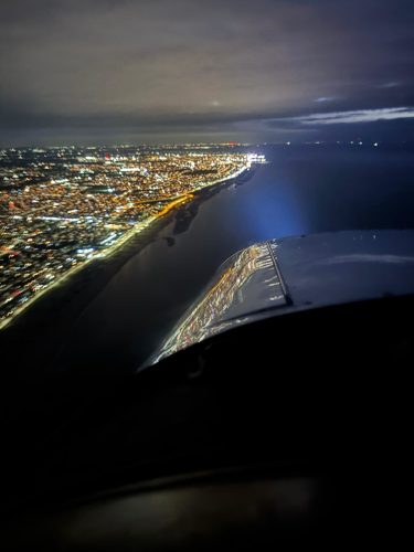 Karen Whelan enjoyed her night rating privileges on a night flight out of Blackpool Airport, with a beautiful reflection of the lights.
