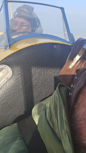 Steph Smith took a friend up in the Tiger Moth, and he took this photo. We love the reflection in Steph’s sunglasses.