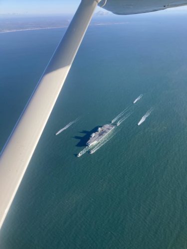 Catherine Ruddick took a spin over the HMS Prince of Wales Aircraft Carrier as she returned to Portsmouth from 8 months in the Far East.