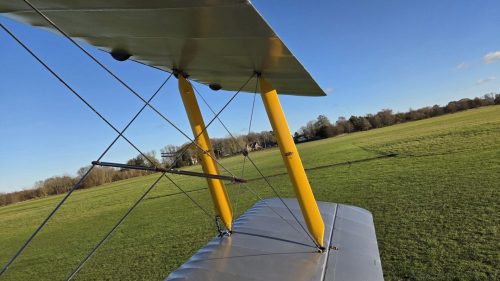 Steph Smith found the grass strip was too wet to fly the Rearwin, so she kept current in the Tiger Moth while she waited for the strip to dry out.